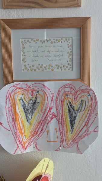 We can serve God a little. Věra is preparing a story from the Bible for the mother's center and I am slowly working on coloring the children's Bible.