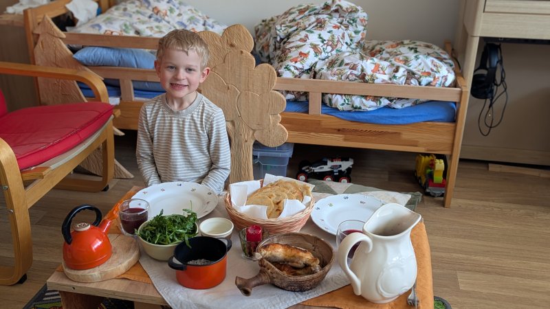 We enjoy beautiful moments in nature on our property in Dubnice and the surrounding area. Vítek and us ran in the tall grass, walked barefoot, climbed a fallen tree, climbed on perch, roasted burritos, got to know animals (mainly insects), plucked flowers, gathered an abundance of forest fruits, watched the stars, slept in a tent...